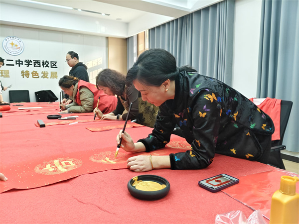 活动现场,民盟艺术家们发挥自身特长,挽袖执笔,泼墨挥毫。有画笔简爽、婉雅秀逸的楷书,有扁平精巧、雄阔严整的隶书,也有雄强俊秀、行云流水般的行书,一行行俊秀苍劲的书法,一句句墨香四溢的语句和一幅幅充满美好寓意的“福”字跃然纸上,饱含幸福吉祥,寄托美好希望,寓意励志宏图,整个现场洋溢着浓浓的年味。