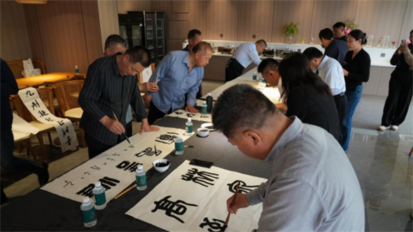 活动伊始,两地书画家展开深入交流。双方围绕书画创作技法、艺术理念及地域文化特色积极探讨,现场气氛热烈。随后,书画家们以松涛云海为灵感,挥毫泼墨,即兴创作了书法、国画作品50余幅。作品或雄浑苍劲,或清新雅致,既展现太行山水的壮美意境,又融入对盛世中华的深情礼赞。